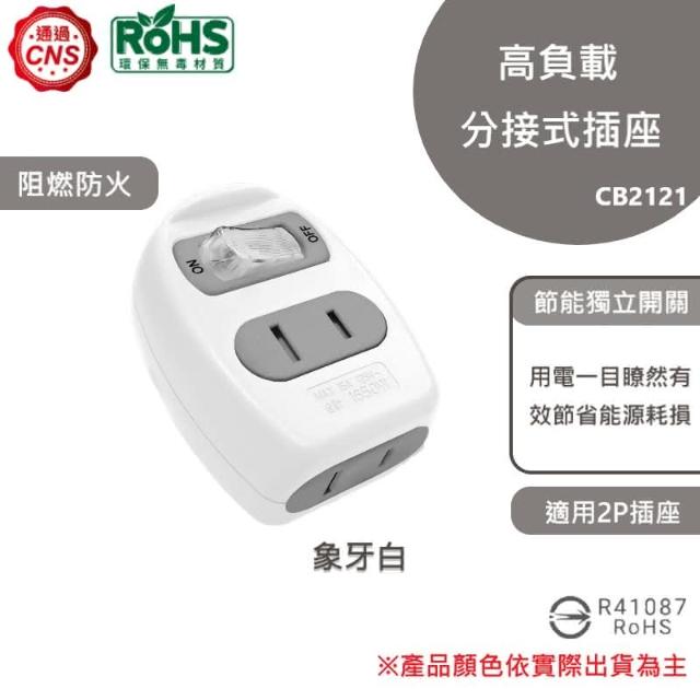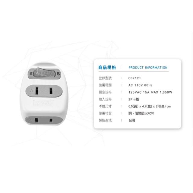 WEITIEN 威電(台灣製造) 威電 CB 2121 高負載分接式插座-1*2P 壁插 壁插 轉接頭 高負載 插接器 節能分接器 阻燃防火