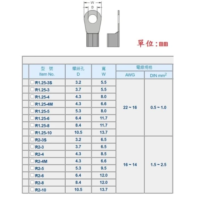 KSS 凱士士 R型裸端子 R1.25 R2.0 R3.5 R5.5 R型端子 裸端子 壓著端子 壓接端子 O型端