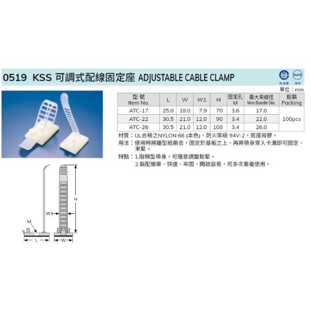 KSS 凱士士 UL合格原料 可調式紮帶配線固定座 可調式配線固定座 電線 固定夾 黏式固定座 整線夾 固定線卡 集線扣 佈線 線扣 理線管
