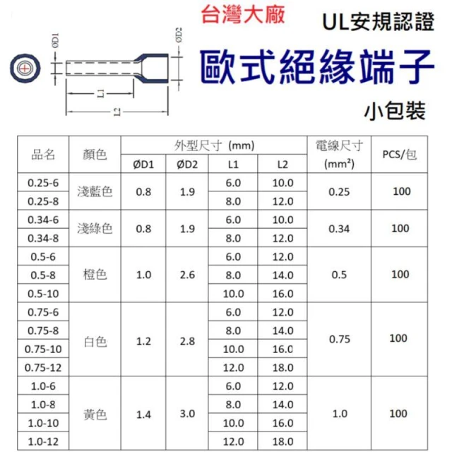( 台灣大廠製 ) 含稅開發票 絕緣歐式端子 小包裝 接線端子 歐式端子 針型端子 0.25-10 絕緣端子 接線