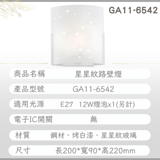 DanceLight 舞光舞光原廠授權 含稅開發票 星星紋路壁燈 玻璃壁燈 造型壁燈 壁燈 床頭燈 GA11-6542 GA11-6544