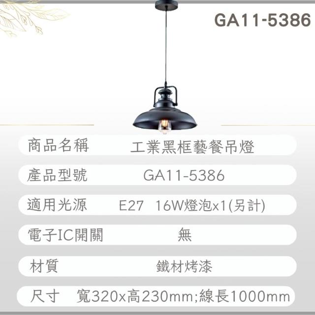 DanceLight 舞光舞光原廠授權 含稅開發票 工業黑框藝餐吊燈 吊燈 餐吊燈 餐廳吊燈 客廳燈 餐桌燈 美術燈 GA11-5386