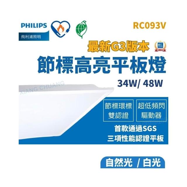 Philips 飛利浦(兩入組) PHILIPS飛利浦 高亮平板燈 34W 48W 節能標章 環保標章 節標平板燈 RC093V G3 平板燈