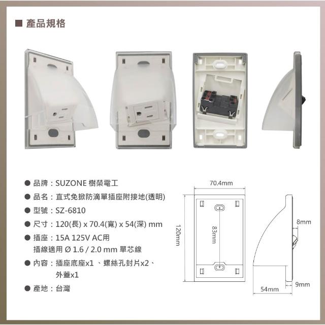 樹榮電工 直式免掀防滴單插座 IPX3 防雨插座 防水插座 耐候性佳 免掀蓋插座 防滴蓋板 SZ-6810