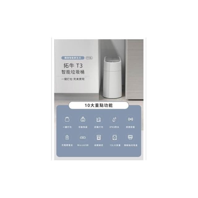 Townew拓牛T3感應式智能垃圾桶13L自動打包鋪袋/IPX3防水 原廠公司貨