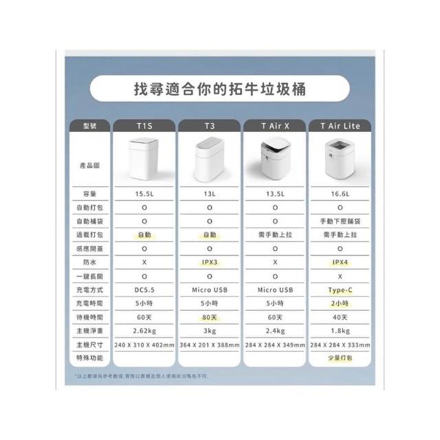 拓牛Townew白/黑 智能自動打包換袋垃圾桶 升級T1S 家用 15.5L大容量