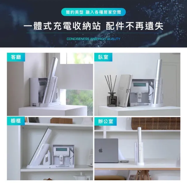 - 一體式收納充電站設計