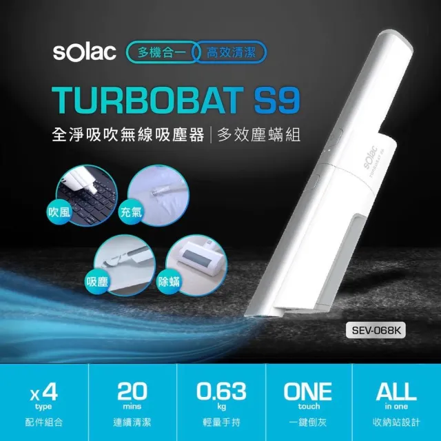 solac SEV-068K S9 全淨吸吹無線吸塵器|多效塵螨組