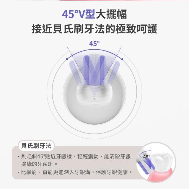 45°V型大擺幅,接近貝氏刷牙