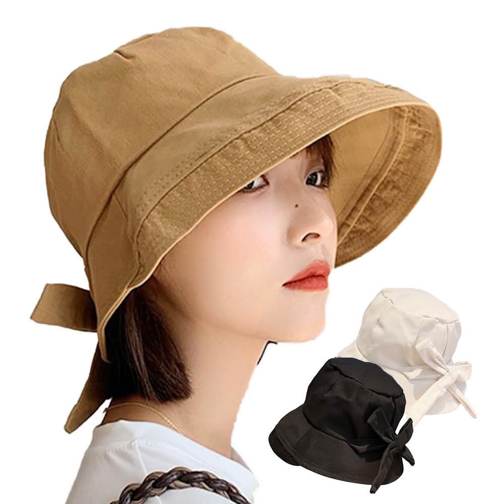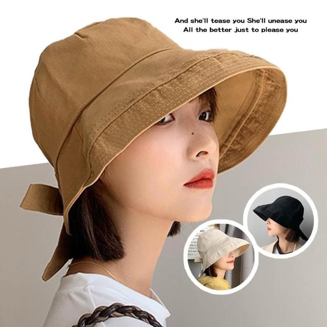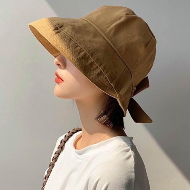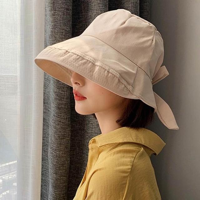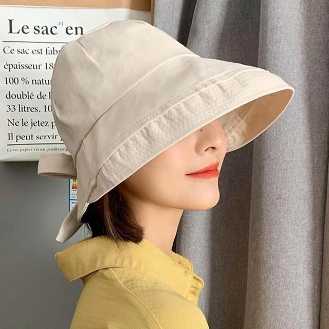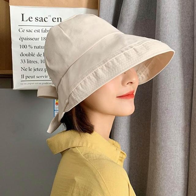QIDINA韓版網紅遮臉蝴蝶結防曬小臉帽 漁夫帽-A / 防曬帽 遮陽帽子女 休閒帽 夏天帽子 大帽簷