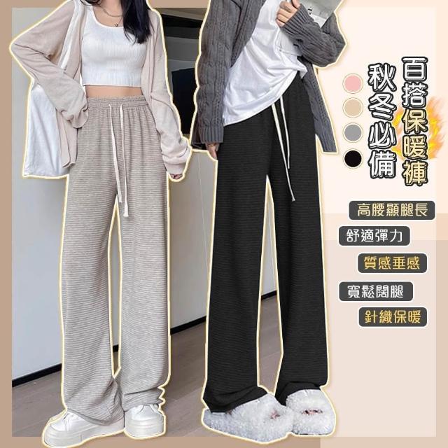 QIDINA秋冬質感百搭寬鬆顯瘦百搭保暖褲-J / 長褲女 落地褲 保暖褲 黑色長褲 休閒褲