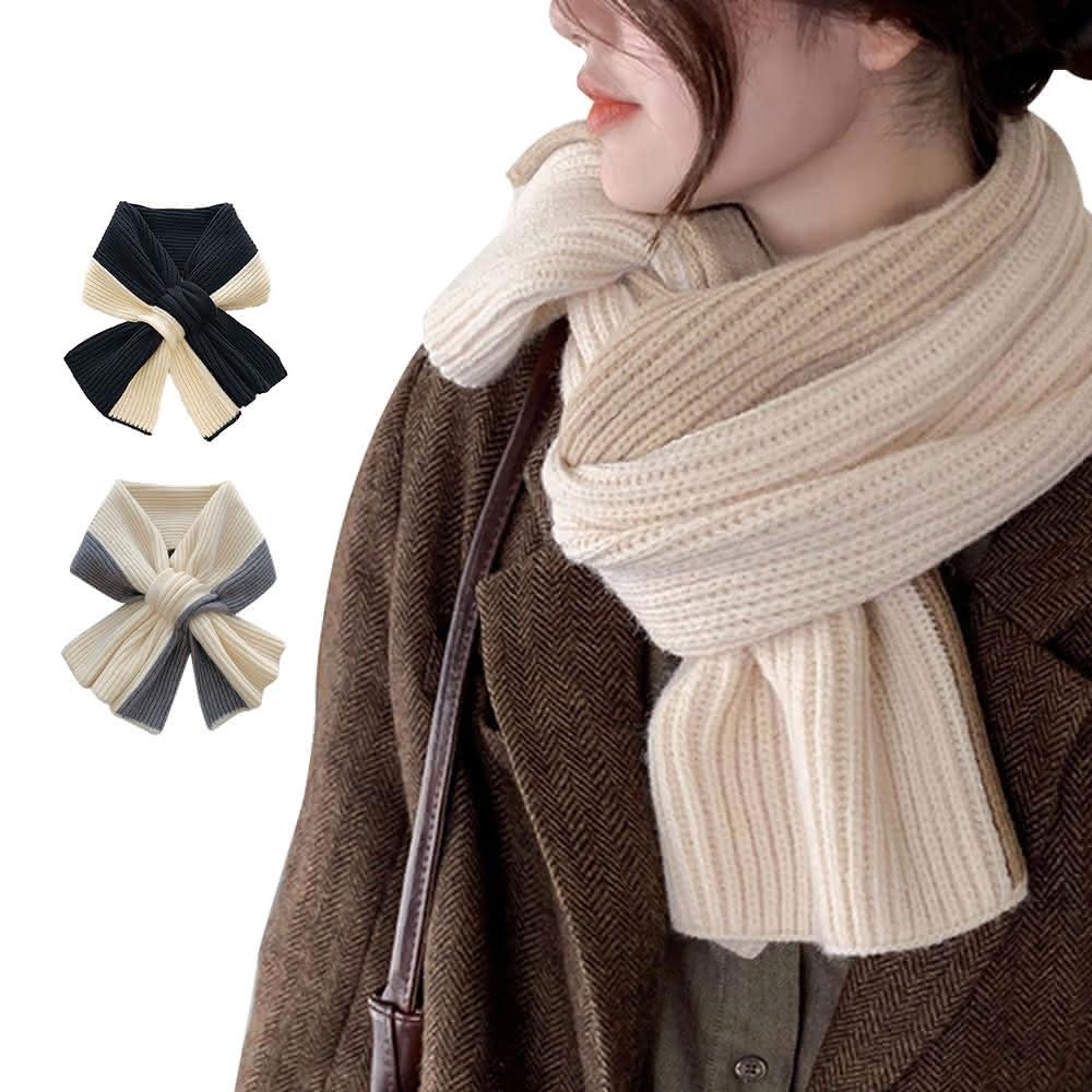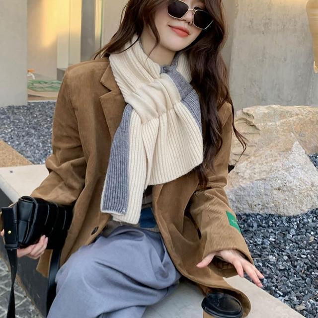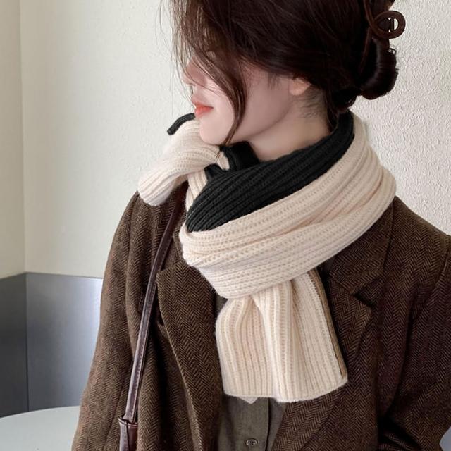 QIDINA韓版慵懶風圍巾百搭針織保暖拼色小圍脖-A 保暖 針織圍脖 短圍巾 針織圍巾女