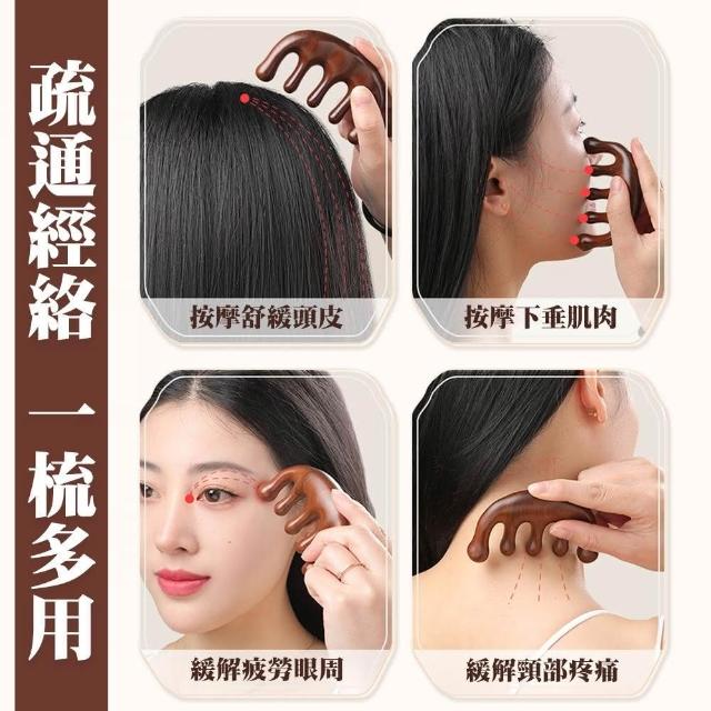 QIDINA多功能檀木經絡按摩梳 / 刮痧 肩頸按摩頭皮 按摩棒 按摩梳 穴位按摩