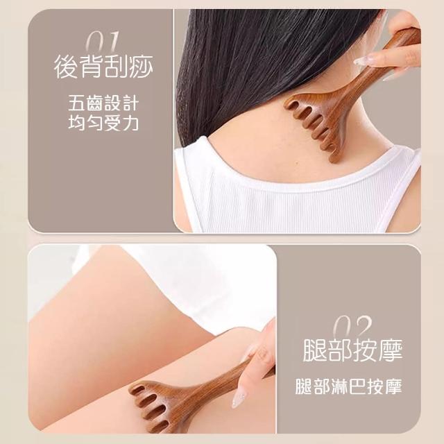 QIDINA六爪舒爽檀木頭臉身體按摩梳 按摩棒-D / 頭皮按摩 眼部按摩 刮痧棒