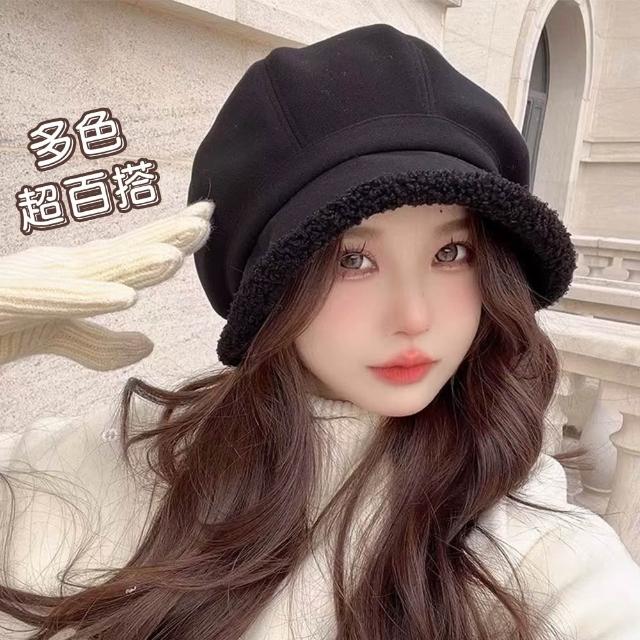 羊羔絨秋冬款貝雷帽,時尚厚實保