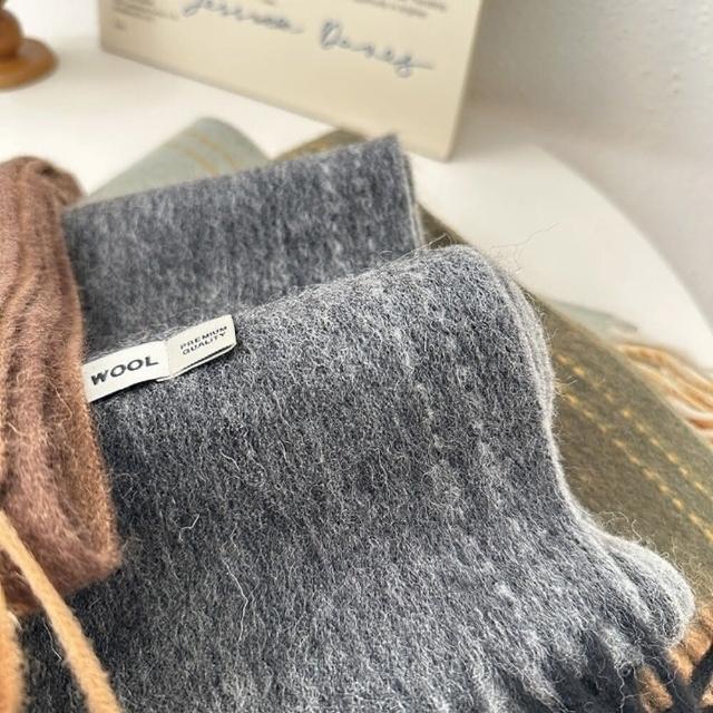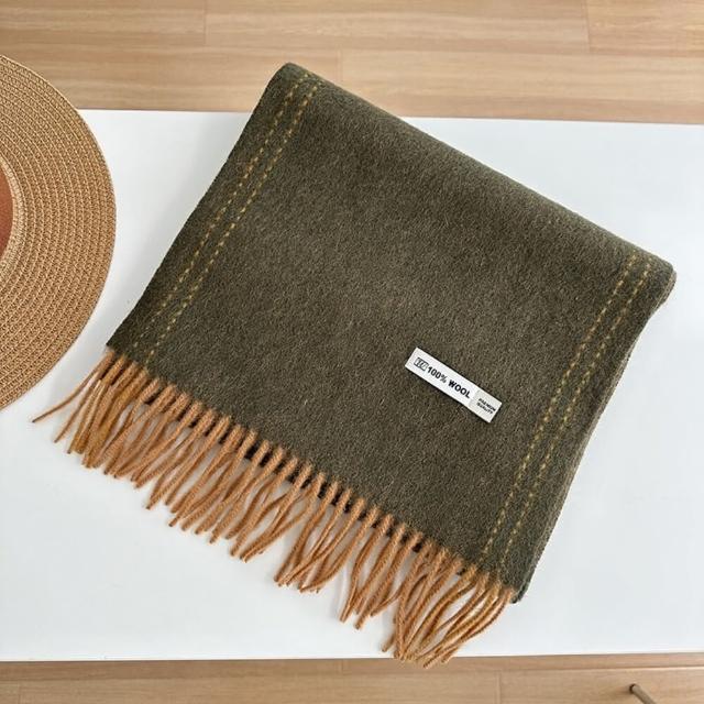 寵你 雙面純羊毛圍巾(100%澳洲羊毛 日系圍脖 純色流蘇窄版披肩 送禮情侶百搭)