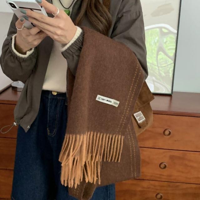 寵你 雙面純羊毛圍巾(100%澳洲羊毛 日系圍脖 純色流蘇窄版披肩 送禮情侶百搭)