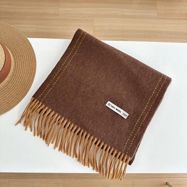 寵你 雙面純羊毛圍巾(100%澳洲羊毛 日系圍脖 純色流蘇窄版披肩 送禮情侶百搭)