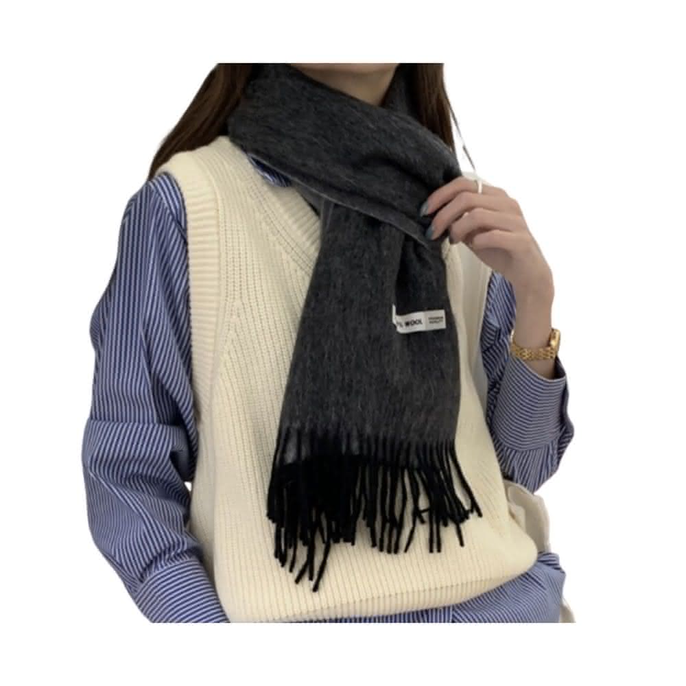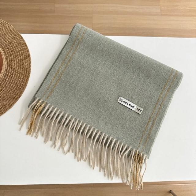 寵你 雙面純羊毛圍巾(100%澳洲羊毛 日系圍脖 純色流蘇窄版披肩 送禮情侶百搭)