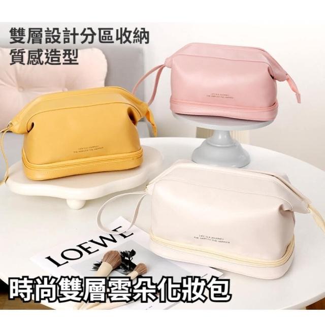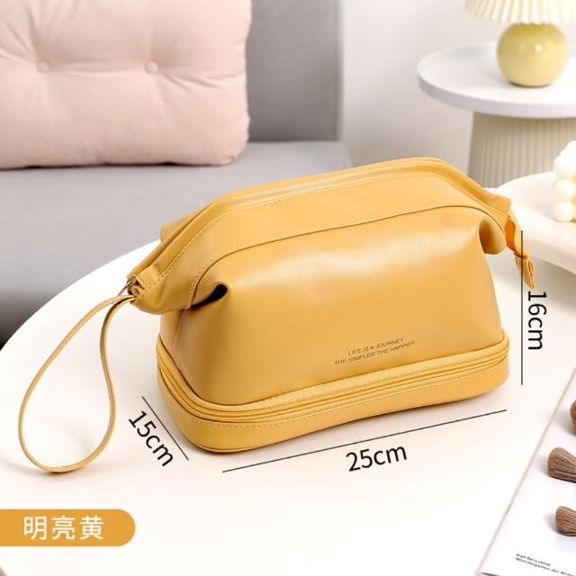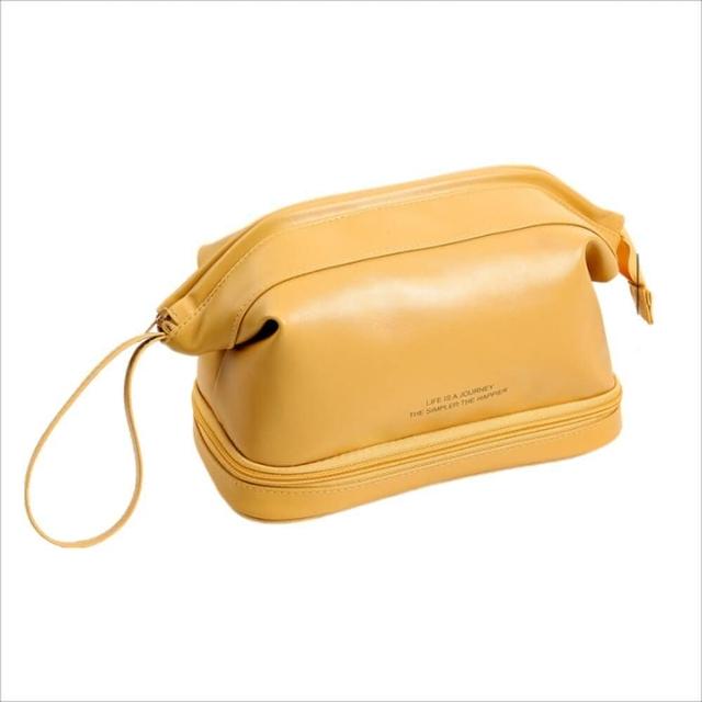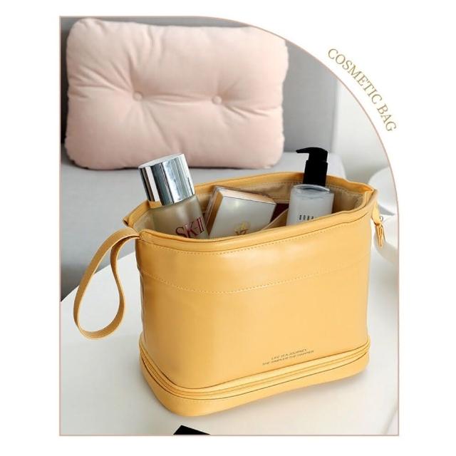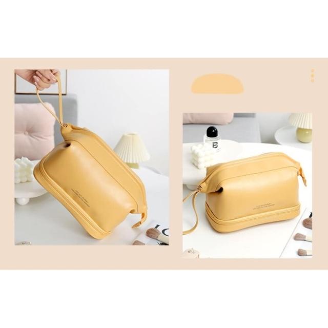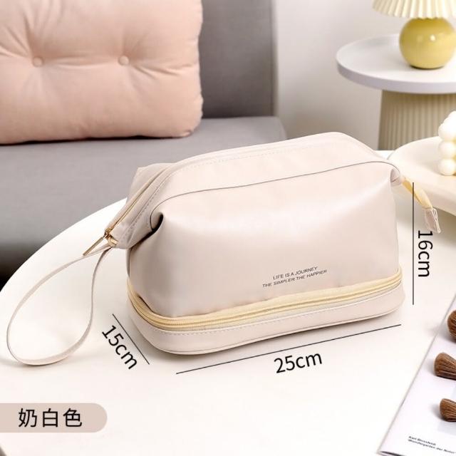 雙層皮革質感化妝包 防波水 大容量旅行洗漱包 化妝品收納包 防水化妝包(大容量旅行洗漱包 化妝品收納包)