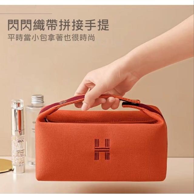 織帶手提帆布化妝包 便攜手提化妝包 字母簡約化妝包 大容量 收納包(便攜手提化妝包 字母簡約化妝包)