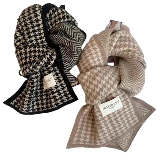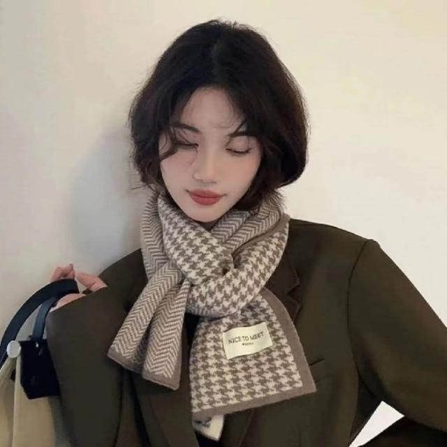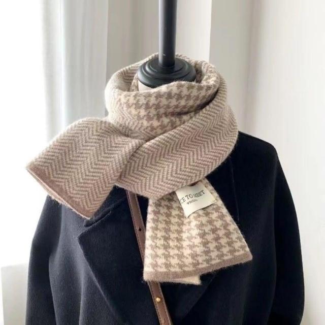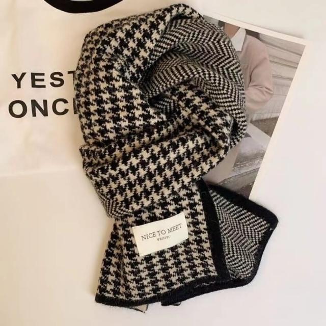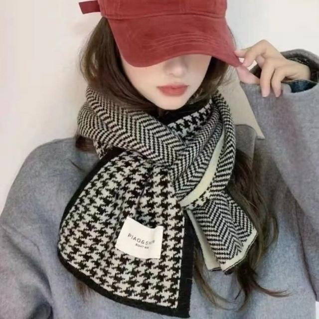 千鳥格針織保暖圍巾 高級感韓系百搭圍脖 情侶針織圍巾 雙面圍巾(高級感韓系百搭圍脖 情侶針織圍巾)