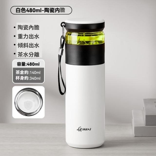 茶水分離陶瓷保溫杯 保溫瓶 瘦瓶身咖啡隨行杯 彈蓋咖啡杯 飲料杯 泡茶杯 冰壩杯 禮盒(保溫瓶)