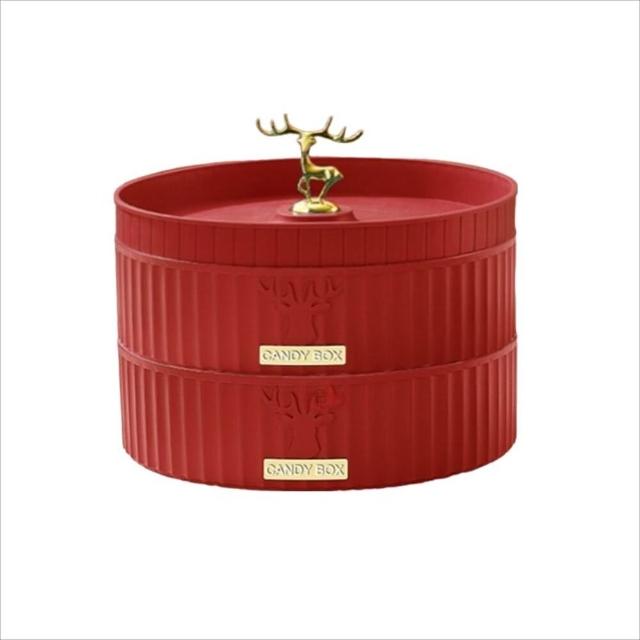 雙層旋轉糖果收納盒 帶蓋分隔 零食收納盤 輕奢糖果盒 瓜子盒 可疊加 送禮