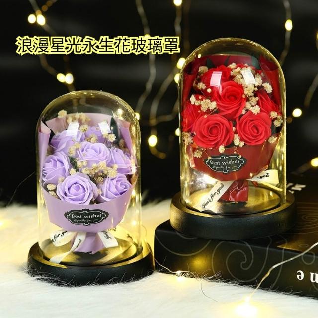 浪漫星光永生花玻璃罩 香皂玫瑰花玻璃罩 禮品 教師節禮物 情人節禮物 不凋謝 燈串 精緻手提袋 送禮