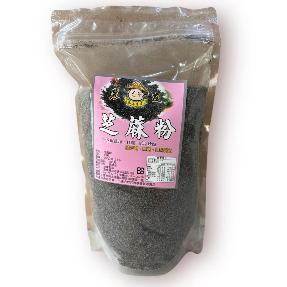 北港農友北港農友 北港老店高鈣細緻純黑芝麻粉,無糖無添加,無榨油的完整顆粒,研磨600g,袋裝