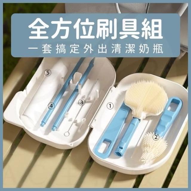 AC生活嚴選 奶瓶刷旅行組 奶瓶清潔 奶瓶刷 攜帶式奶瓶刷6件組 奶嘴刷 矽膠奶瓶刷 奶瓶刷瀝水架 外出奶瓶刷
