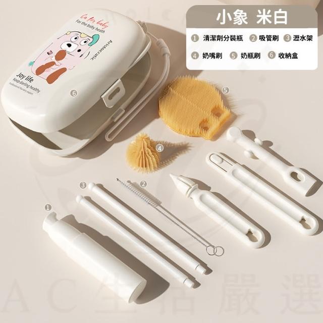 AC生活嚴選 奶瓶刷旅行組 奶瓶清潔 奶瓶刷 攜帶式奶瓶刷6件組 奶嘴刷 矽膠奶瓶刷 奶瓶刷瀝水架 外出奶瓶刷