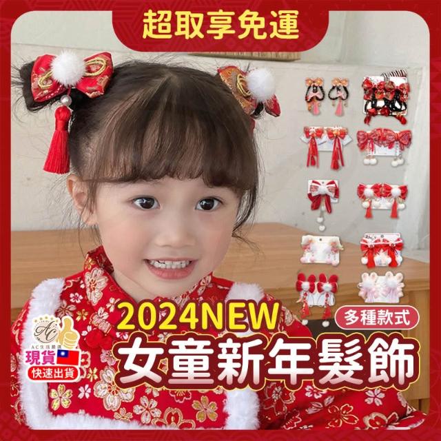 AC生活嚴選 過年髮飾 髮夾 兒童髮飾 新年髮飾 女童髮飾 紅色髮飾 兒童髮夾 女童髮夾 紅色髮夾 中國風髮飾 髮飾