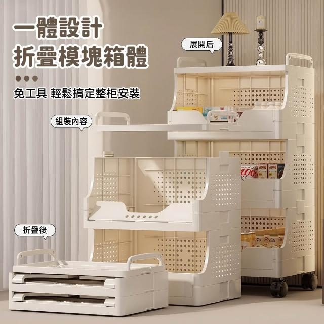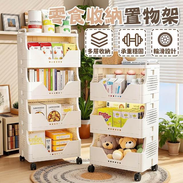 柏詩互創移動小推車 零食收納置物架 收納架 零食置物架 置物架(卡扣設計自由疊加 承重強 可折疊模塊設計 附萬向輪 PP材質)