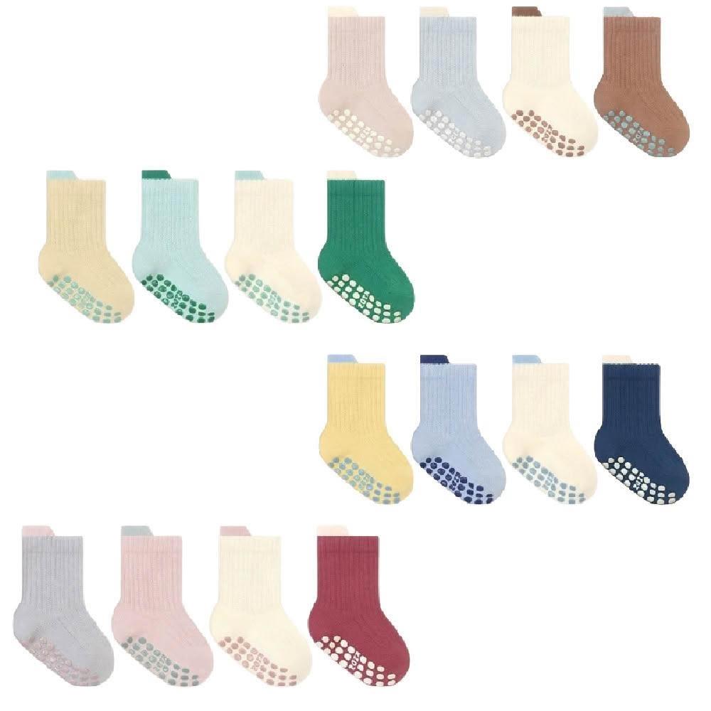 [Momm]素色防滑寶寶純棉襪 4入組(嬰兒襪子/純棉童襪/男女童襪 /嬰幼童襪/嬰兒襪/防滑襪/兒童襪)