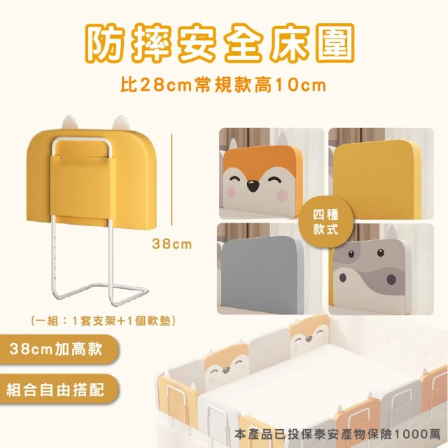 [Momm]組合式床圍 加高款 38cm 1組(多款可選/組合軟墊形式/床圍護欄/圍欄/床圍欄/安全防摔護欄)