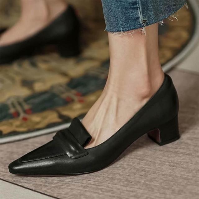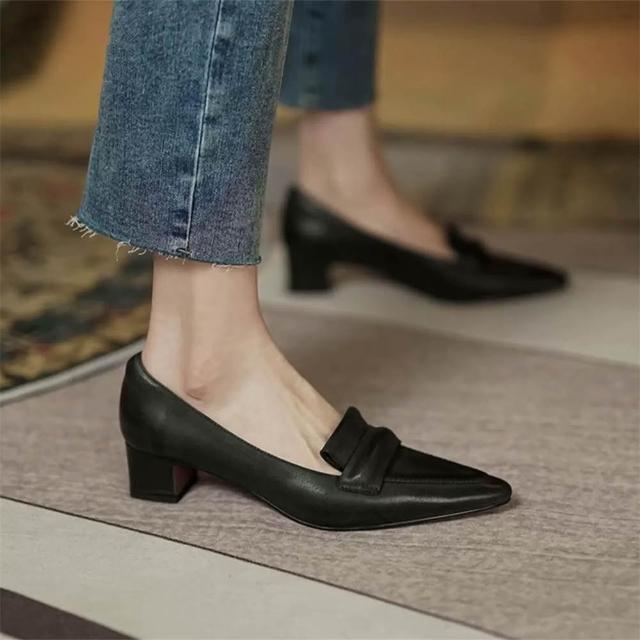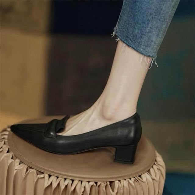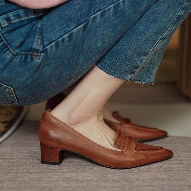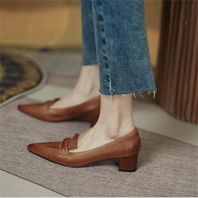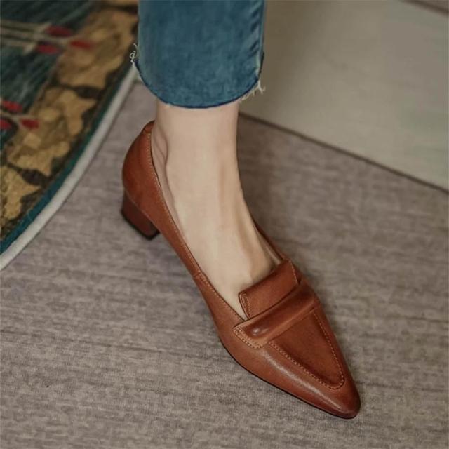 K&J 閃亮服飾 2025英倫風尖頭復古真皮女鞋 棕色 黑色 經典復古 真皮女鞋 尖頭設計