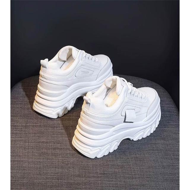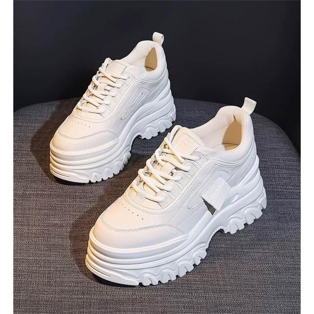 K&J 閃亮服飾 真皮百搭小白鞋 底增高設計 簡約時尚休閒鞋 透氣舒適耐穿 潮流顯瘦款 防滑軟底通勤必備 約會穿搭首選