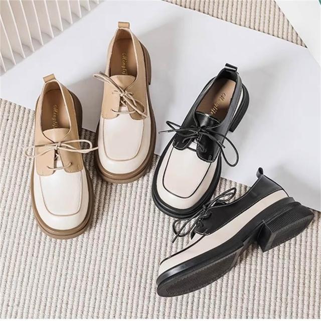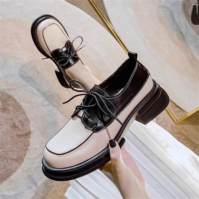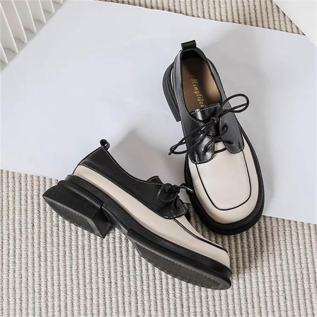 K&J 閃亮服飾 學院風拚色皮鞋 小皮鞋 百搭鞋款 復古時尚 文青風 英倫風 女生皮鞋 優雅鞋款 學生風 韓系穿搭