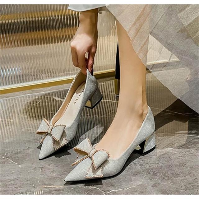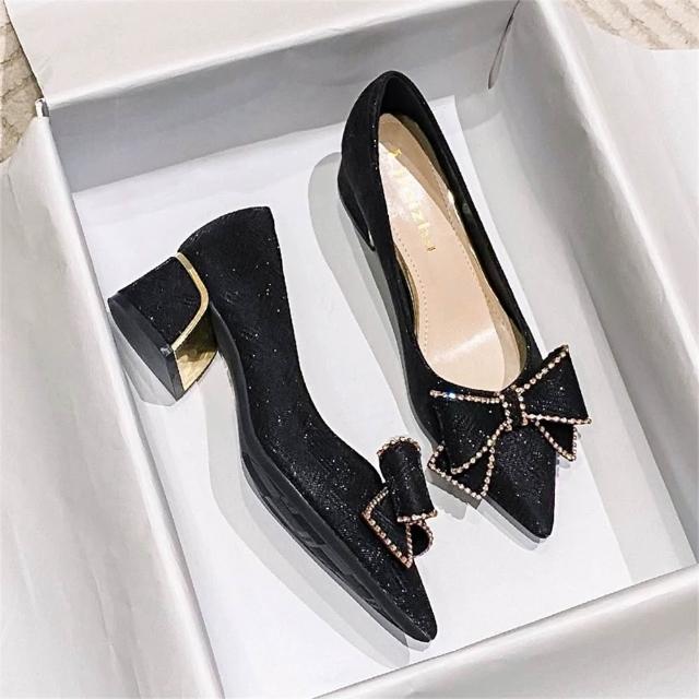 K&J 閃亮服飾 法式蝴蝶結跟鞋 粗跟鞋推薦 氣質女鞋 約會穿搭 顯瘦鞋款 百搭粗跟鞋 法式浪漫風 優雅粗跟鞋