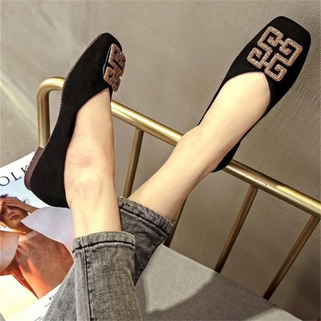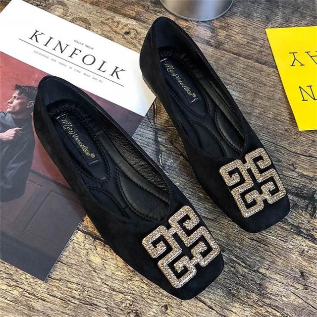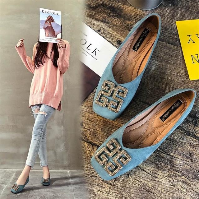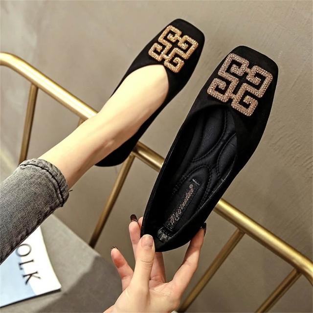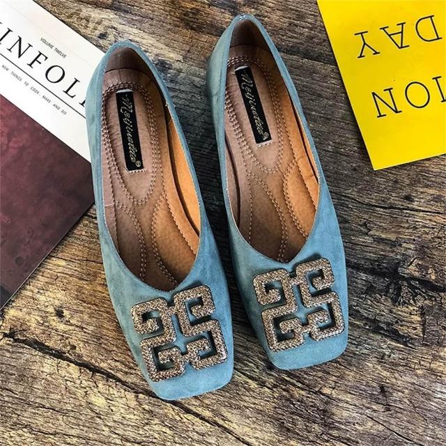 K&J 閃亮服飾 平底時尚方頭鞋 百搭平底鞋 顯腳瘦設計 舒適走跳鞋 優雅方頭 文青鞋款 女孩日常鞋 平底也有型