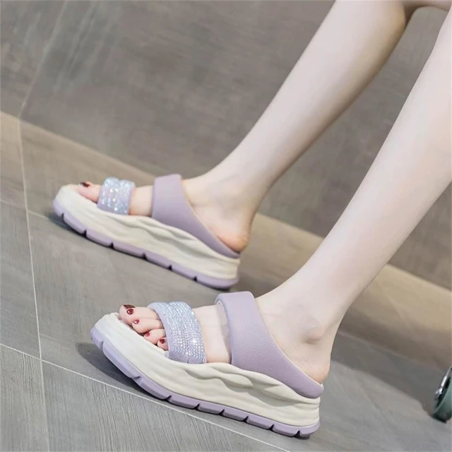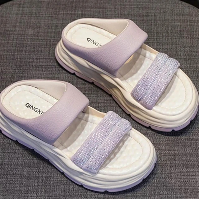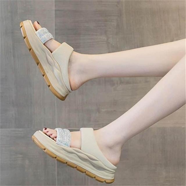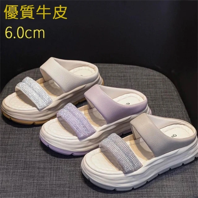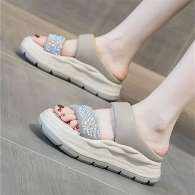 K&J 閃亮服飾 水鑽一字厚底涼拖鞋 一字設計涼鞋 夏季厚底拖鞋 顯高不累 鬆糕底涼鞋 穿搭亮點鞋款 舒適耐走拖鞋