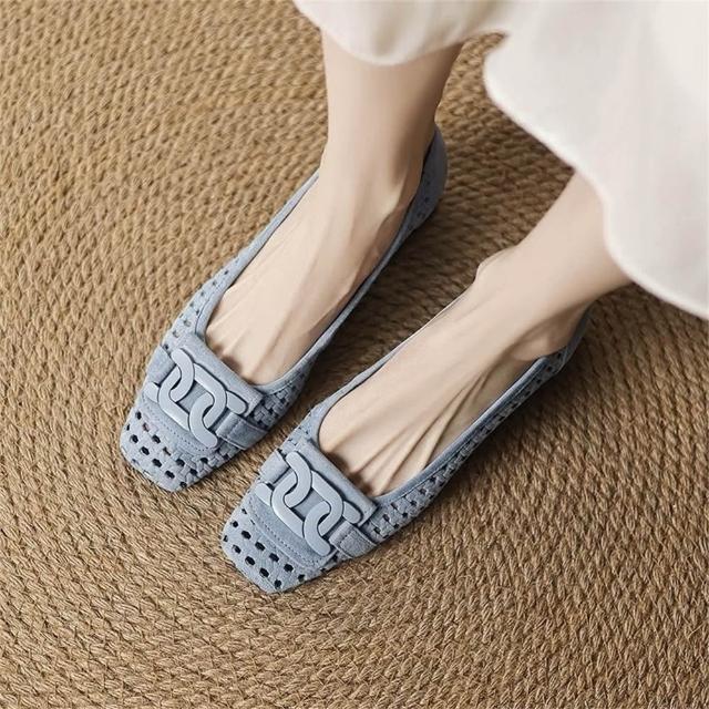 K&J 閃亮服飾 法式小羊皮鏤空透氣柔軟粗跟鞋 鏤空透氣 柔軟粗跟鞋 真皮高跟鞋 夏日涼鞋 女生粗跟鞋 舒適高跟鞋