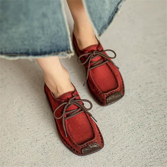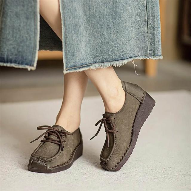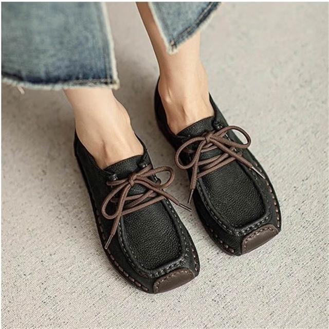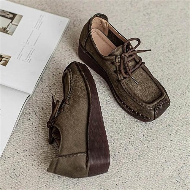 K&J 閃亮服飾 復古手工真皮鞋|繫帶牛筋底休閒單鞋 牛筋底真皮鞋 復古牛筋鞋 手工真皮單鞋 手工縫線鞋 真皮女鞋推薦