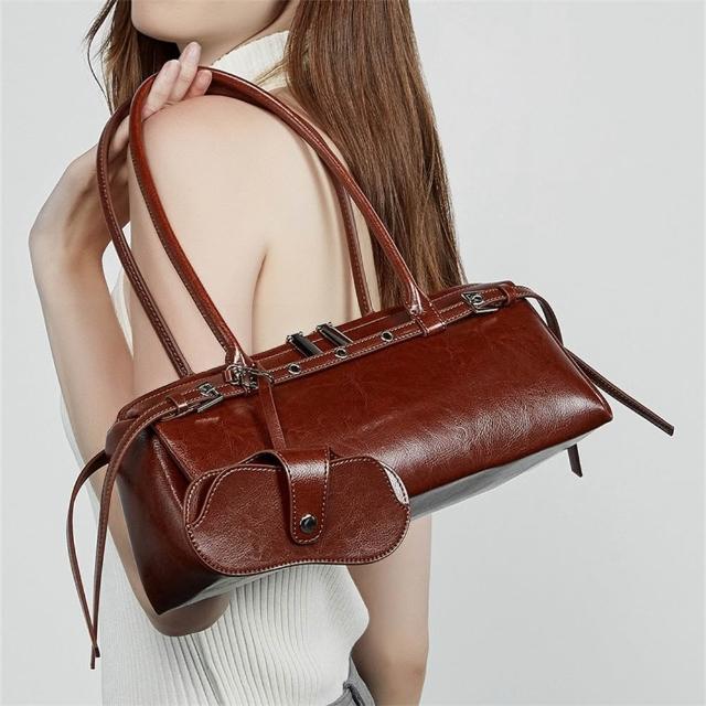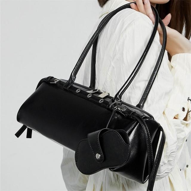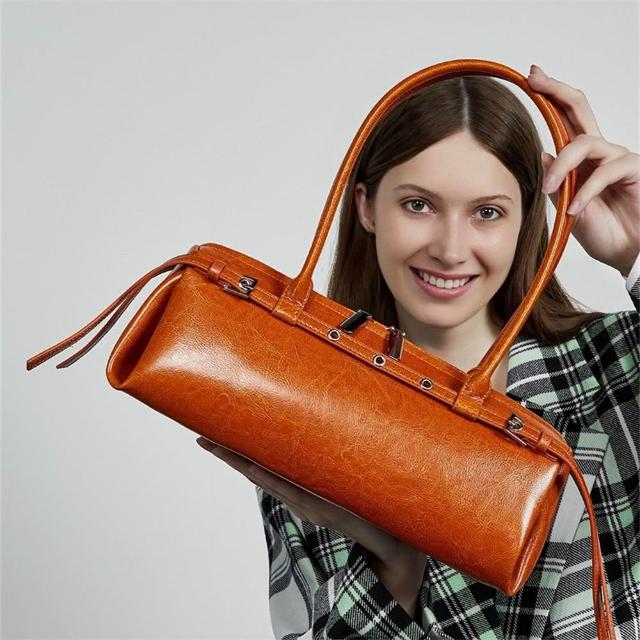 K&J 閃亮服飾 真皮復古機車風手提包|腋下可背・潮酷皮帶造型女包 牛皮肩背包 潮流女包推薦 女生腋下包 多功能皮包