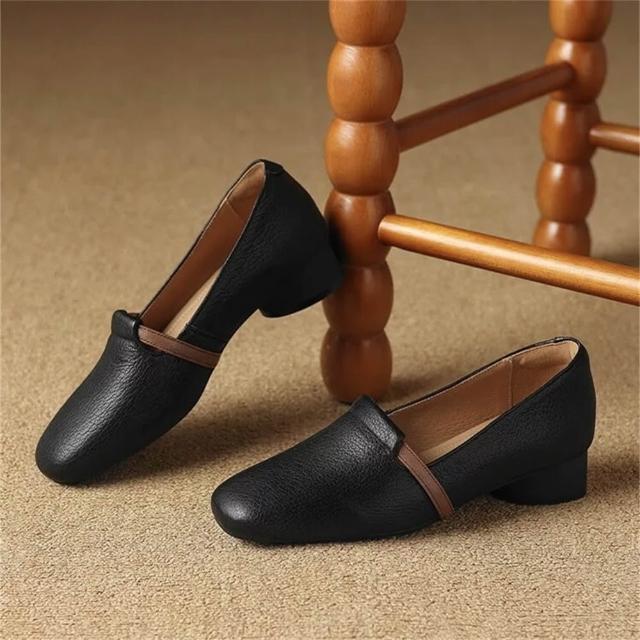 K&J 閃亮服飾 法式真皮羊皮中跟樂福鞋|方頭粗跟軟底 真皮樂福鞋 舒適中跟鞋 穩定好走 百搭粗跟鞋 通勤鞋款 高級感