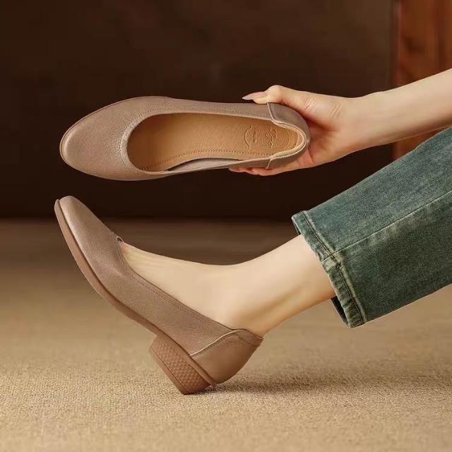 K&J 閃亮服飾 法式真皮中跟單鞋|圓頭粗跟軟底百搭款 穩定好走 中跟粗跟鞋 舒適軟底鞋 百搭單鞋 通勤鞋款 約會鞋