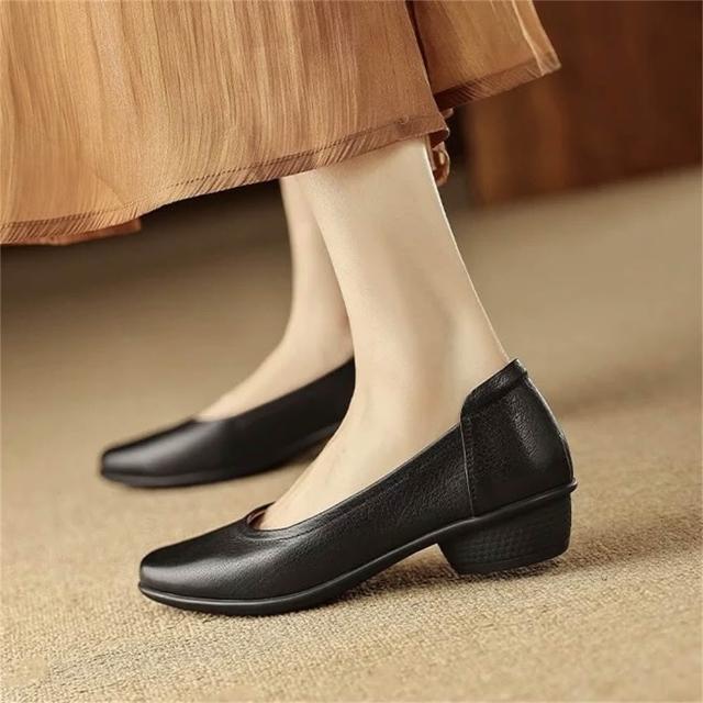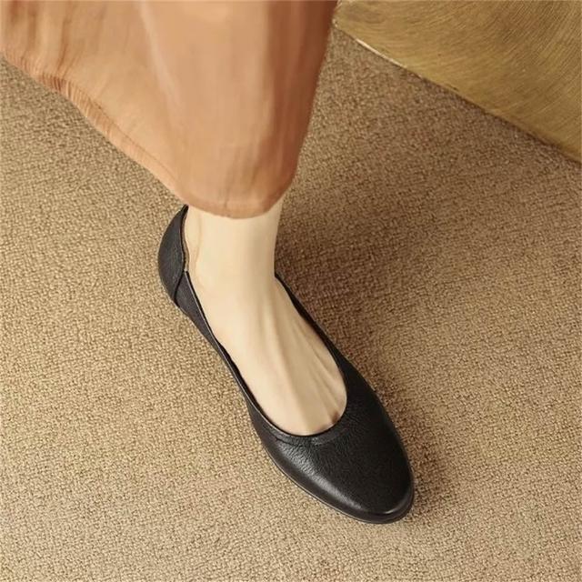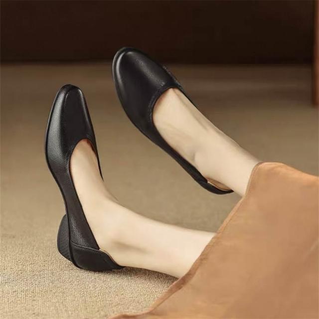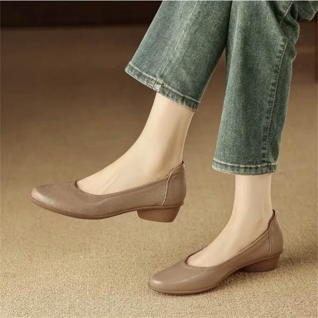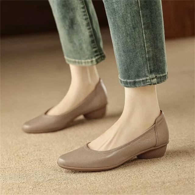 K&J 閃亮服飾 法式真皮中跟單鞋|圓頭粗跟軟底百搭款 穩定好走 中跟粗跟鞋 舒適軟底鞋 百搭單鞋 通勤鞋款 約會鞋