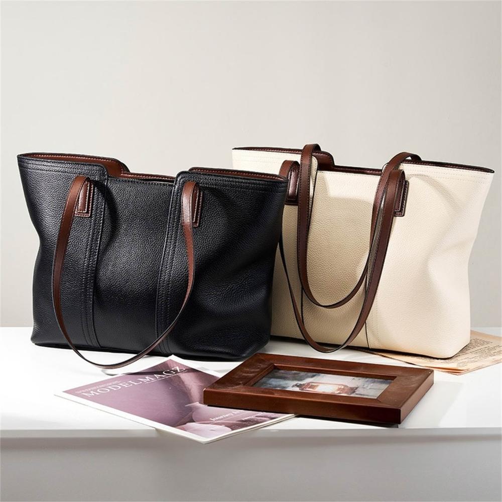 K&J 閃亮服飾 2025新款|大容量真皮托特包百搭通勤女包 百搭手提包 高級感女包 簡約托特包 真皮單肩包 通勤必備