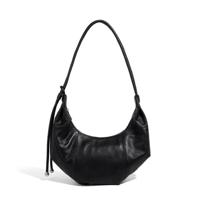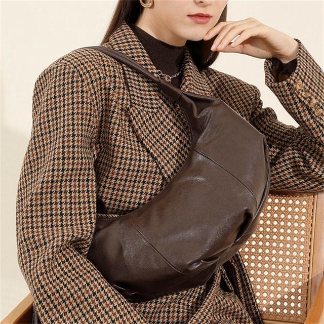 K&J 閃亮服飾 設計感牛角包|真皮通勤大容量斜挎腋下包女包 高級感包包 質感女包 2025新款 百搭托特包